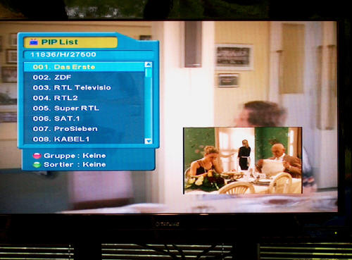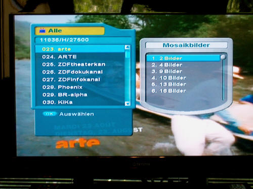 Eine schöne Möglichkeit ist wenn die Kanalliste aufgerufen ist, das ein Mosaikbildschirm bis zu 16 Bilder eingestellt werden kann.