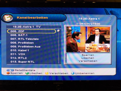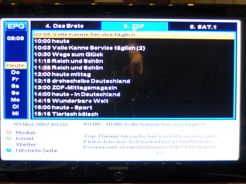 Mit der links/rechts Taste der Fernbedienung kann auch auf andere Kanäle umgeschalten werden